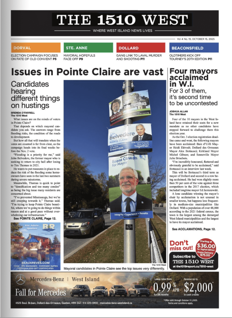 Read our digital edition Support your source of quality local news. Stay informed and up to date. And have it all at your fingertips. Latest Edition - Oct. 15th, 2025 Four West Island mayors acclaimedandIssues in Pointe Clairecampaign are vast Read more Previous Editions Oct. 15, 2025 Sept. 24, 2025 Sept. 10, 2025 Aug. 27, 2025 Aug. 13, 2025 July 30, 2025 July 16, 2025 June 25, 2025 June 11, 2025 May 28, 2025 May 14, 2025 April 30, 2025 April 16, 2025 March 26, 2025 March 12, 2025 Feb. 26, 2025 Feb. 12, 2025 Jan. 29, 2025 Jan. 15, 2025 Dec. 19, 2024 Dec. 11, 2024 Nov. 27, 2024 Nov. 13, 2024 Oct. 23, 2024 Oct. 9, 2024 Sept. 25, 2024 Sept. 11, 2024 Aug. 14, 2024 July 17, 2024 June 12, 2024 May 15, 2024 April 10, 2024 March 13, 2024 Feb. 14, 2024 Jan. 17, 2024 Dec. 13, 2023 Nov. 15, 2023 Oct. 18, 2023 July 19, 2023 April 12, 2023 March 15, 2023 December 14th Jan. 18, 2023 November 9th October 12th September 14th August 10th July 13th April 21st May 18th
