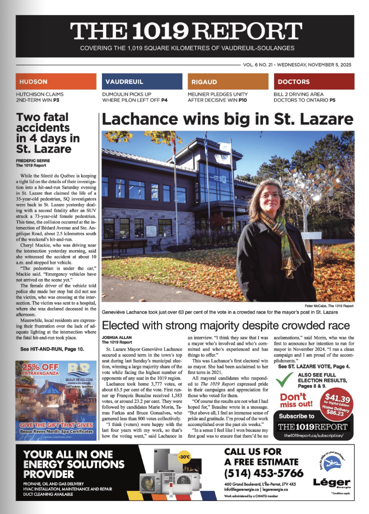 Read our digital edition Support your source of quality local news. Stay informed and up to date. And have it all at your fingertips. Latest Edition - Nov. 5, 2025 Full election results of all towns in 1019 region andTwo fatal accidents in four days in St. Lazare Read more Previous Editions Nov. 5, 2025 Oct. 22, 2025 Oct. 8, 2025 Sept. 17, 2025 Sept. 3, 2025 Aug. 6, 2025 July 23, 2025 July 9, 2025 June 18, 2025 June 4, 2025 May 7, 2025 April 23, 2025 April 9, 2025 March 19, 2025 March 5, 2025 Feb. 19, 2025 Feb. 5, 2025 Jan. 8, 2025 Dec. 18, 2024 Dec. 4, 2024 Nov. 20, 2024 Nov. 6, 2024 Oct. 16, 2024 Sept. 18, 2024 Sept. 4, 2024 Aug. 21, 2024 Aug. 7, 2024 July 24, 2024 July 10, 2024 June 19, 2024 June 5, 2024 May 22, 2024 May 8, 2024 April 17, 2024 April 3, 2024 March 20, 2024 March 6, 2024 Feb. 21, 2024 Feb. 7, 2024 Jan. 24, 2024 Jan. 10, 2024 Dec. 20, 2023 Nov. 22, 2023 Nov. 8, 2023 Oct. 25, 2023 Oct. 11, 2023 Sept. 20, 2023 Sept. 6, 2023 Aug. 23, 2023 July 26, 2023 July 12, 2023 June 21, 2023 May 24, 2023 April 19, 2023 April 5, 2023 March 22, 2023 March 8, 2023 Feb. 22, 2023 Jan 25th Jan. 11, 2023 November 2nd December 21st December 21st December 21st November 16th October 19th September 21st October 5th September 7th August 17th August 3rd July 20th July 6th June 22th June 5th May 25th May 11th April 13th March 30th March 16th March 2nd February 16th February 2nd January 5th December 22th December 8th November 24th November 10th October 27th October 13th September 29th September 15th September 1st August 18th August 4th July 21st July 7th June 23rd June 9th May 26th May 12th April 28th April 14th March 31st March 3rd Feb 17th March 17th
