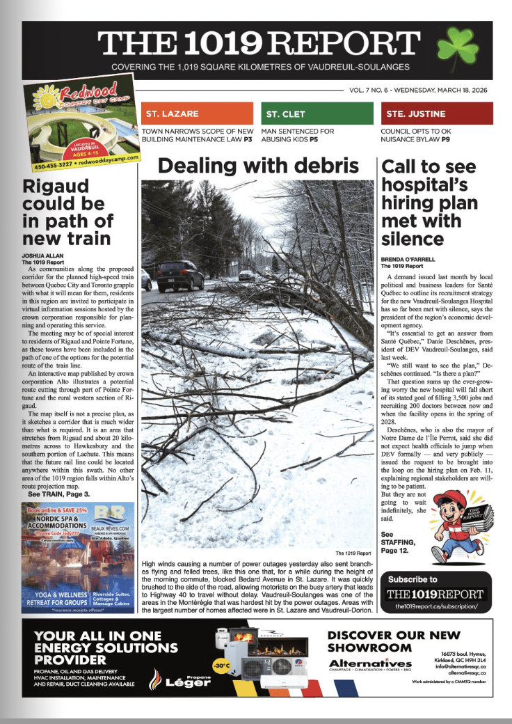 Read our digital edition Support your source of quality local news. Stay informed and up to date. And have it all at your fingertips. Latest Edition - March 18, 2026 Call to see hospital’shiring plan met with silence andSt. Lazare narrow’s new building maintenance bylaw Read more Previous Editions March 18, 2026 March 4, 2026 Feb. 18, 2026 Feb. 4, 2026 Jan. 21, 2026 Jan. 7, 2026 Dec. 17, 2025 Dec. 3, 2025 Nov. 19, 2025 Nov. 5, 2025 Oct. 22, 2025 Oct. 8, 2025 Sept. 17, 2025 Sept. 3, 2025 Aug. 6, 2025 July 23, 2025 July 9, 2025 June 18, 2025 June 4, 2025 May 7, 2025 April 23, 2025 April 9, 2025 March 19, 2025 March 5, 2025 Feb. 19, 2025 Feb. 5, 2025 Jan. 8, 2025 Dec. 18, 2024 Dec. 4, 2024 Nov. 20, 2024 Nov. 6, 2024 Oct. 16, 2024 Sept. 18, 2024 Sept. 4, 2024 Aug. 21, 2024 Aug. 7, 2024 July 24, 2024 July 10, 2024 June 19, 2024 June 5, 2024 May 22, 2024 May 8, 2024 April 17, 2024 April 3, 2024 March 20, 2024 March 6, 2024 Feb. 21, 2024 Feb. 7, 2024 Jan. 24, 2024 Jan. 10, 2024 Dec. 20, 2023 Nov. 22, 2023 Nov. 8, 2023 Oct. 25, 2023 Oct. 11, 2023 Sept. 20, 2023 Sept. 6, 2023 Aug. 23, 2023 July 26, 2023 July 12, 2023 June 21, 2023 May 24, 2023 April 19, 2023 April 5, 2023 March 22, 2023 March 8, 2023 Feb. 22, 2023 Jan 25th Jan. 11, 2023 November 2nd December 21st December 21st December 21st November 16th October 19th September 21st October 5th September 7th August 17th August 3rd July 20th July 6th June 22th June 5th May 25th May 11th April 13th March 30th March 16th March 2nd February 16th February 2nd January 5th December 22th December 8th November 24th November 10th October 27th October 13th September 29th September 15th September 1st August 18th August 4th July 21st July 7th June 23rd June 9th May 26th May 12th April 28th April 14th March 31st March 3rd Feb 17th March 17th